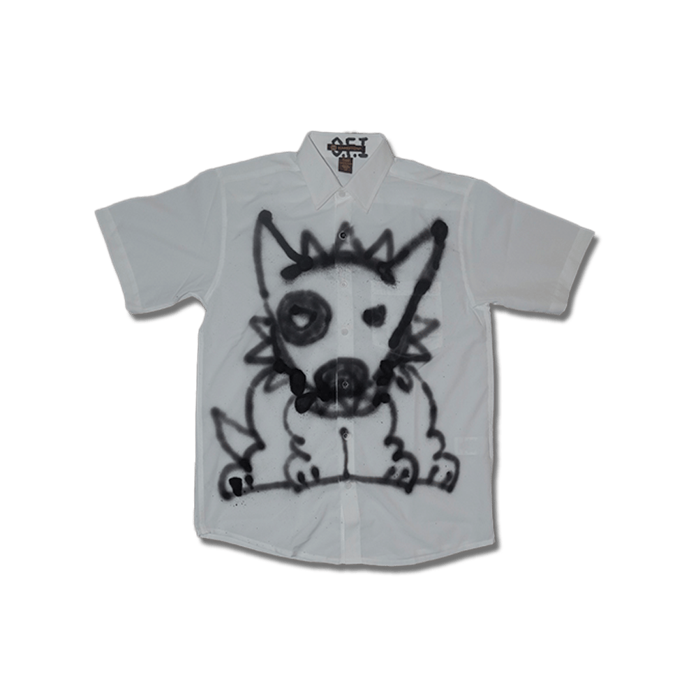 Hand painted white button-up short sleeve shirt